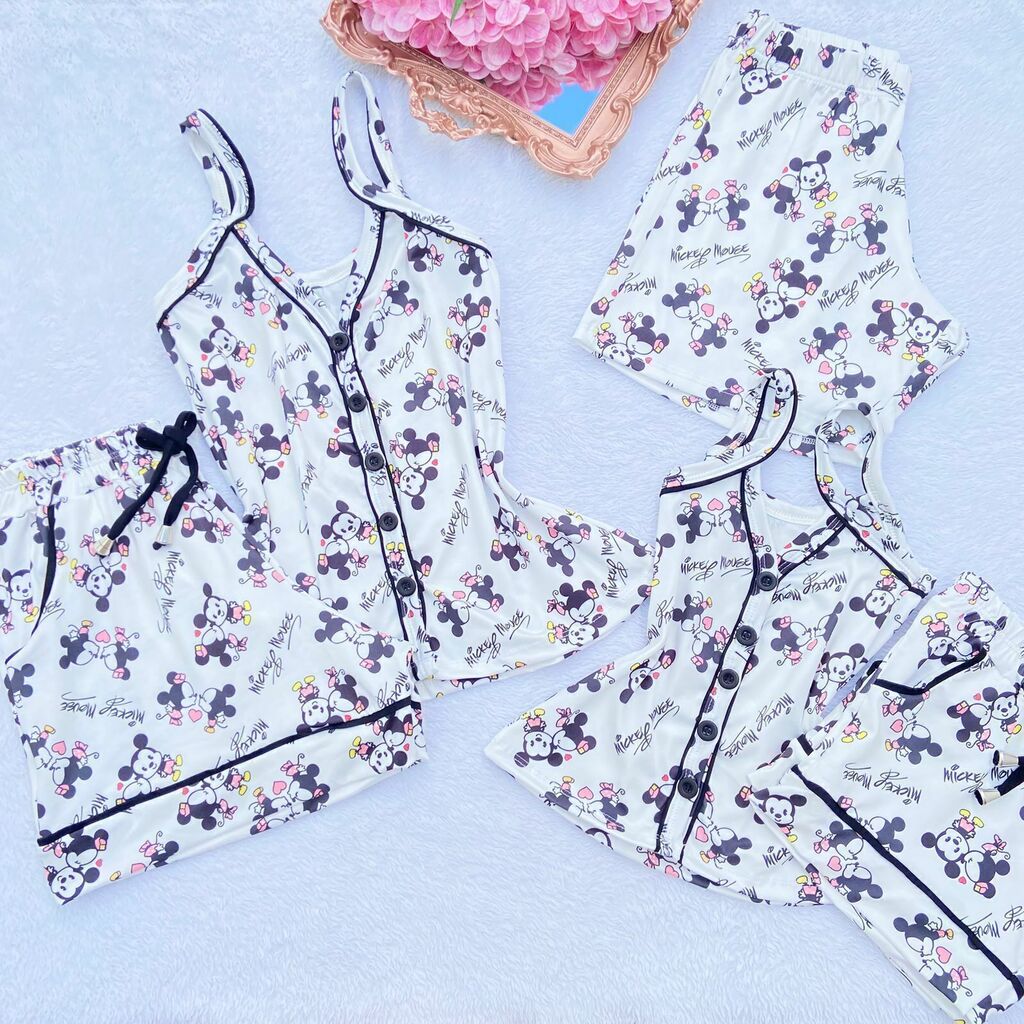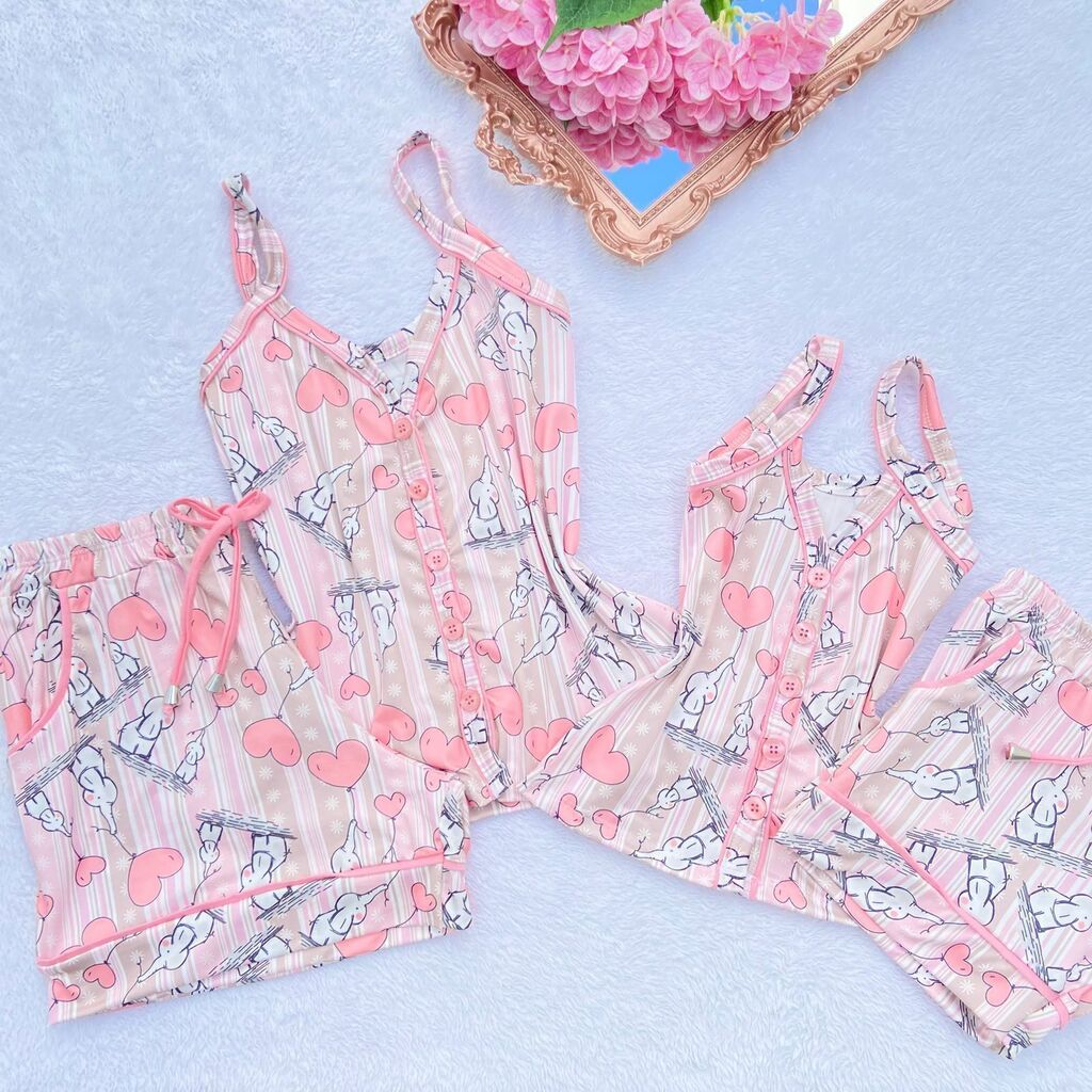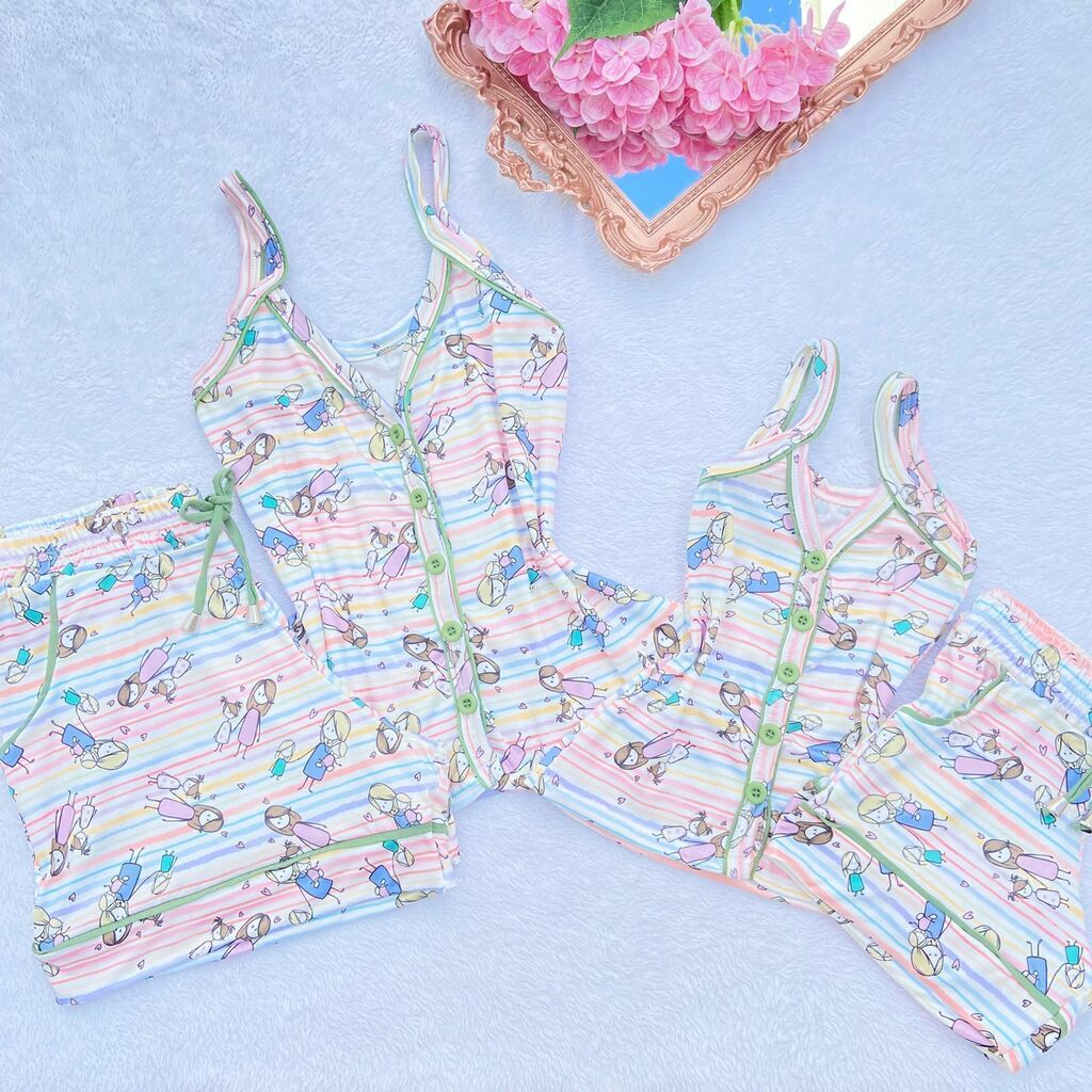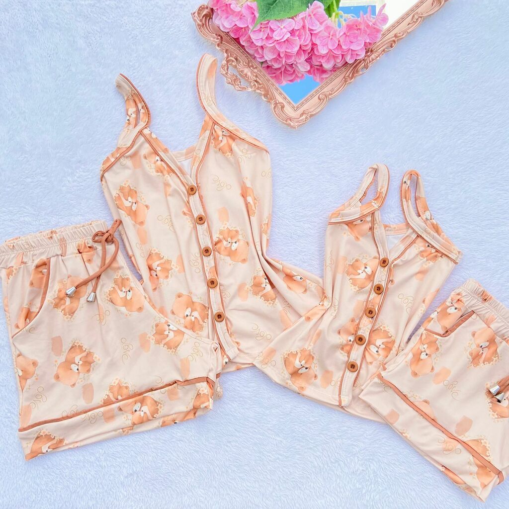 Experimente o Pijama Americano Família - Adulto, confeccionado no tecido fluity, que proporciona leveza e conforto incomparáveis. A blusa de alça apresenta uma charmosa abertura frontal com botões caseados, conferindo elegância ao conjunto.