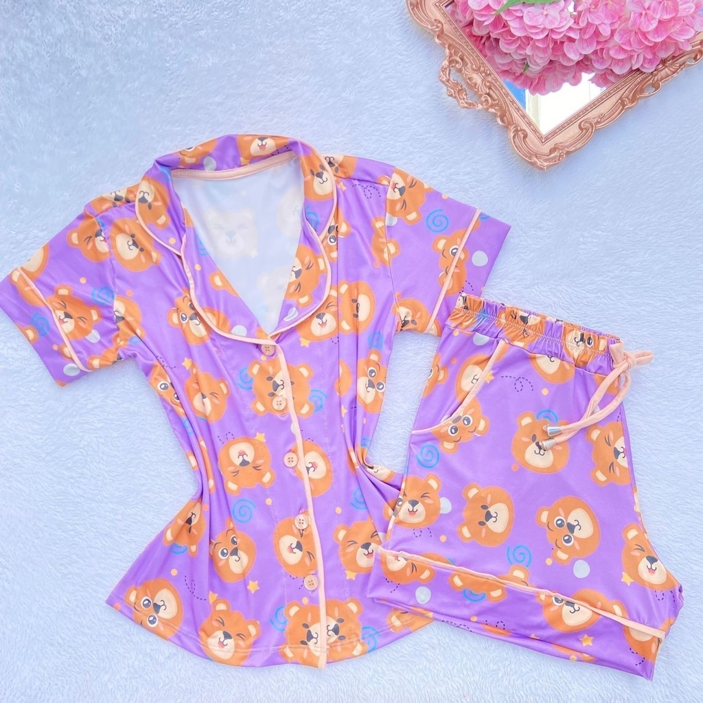 Descubra o Pijama Americano Short, confeccionado no delicado tecido fluity, que unifica conforto e elegância. A blusa de manga curta apresenta abertura frontal com botões caseados e detalhes em viés, conferindo sofisticação ao design. O short curto, com cós de elástico embutido e fitilho para amarração, oferece ajuste perfeito e praticidade, complementado por um bolso funcional e estampas exclusivas.