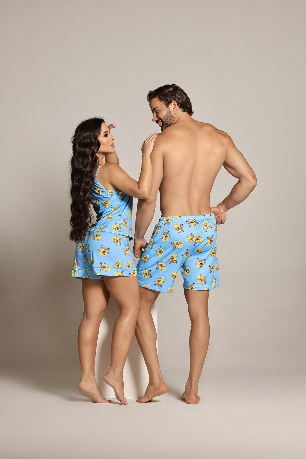 Descubra o Pijama Casal - Feminino, confeccionado no suave tecido fluity, que proporciona conforto excepcional. A camiseta de alça com gola redonda é ideal para noites relaxantes. O short e a blusa estampados trazem um toque moderno e encantador.
