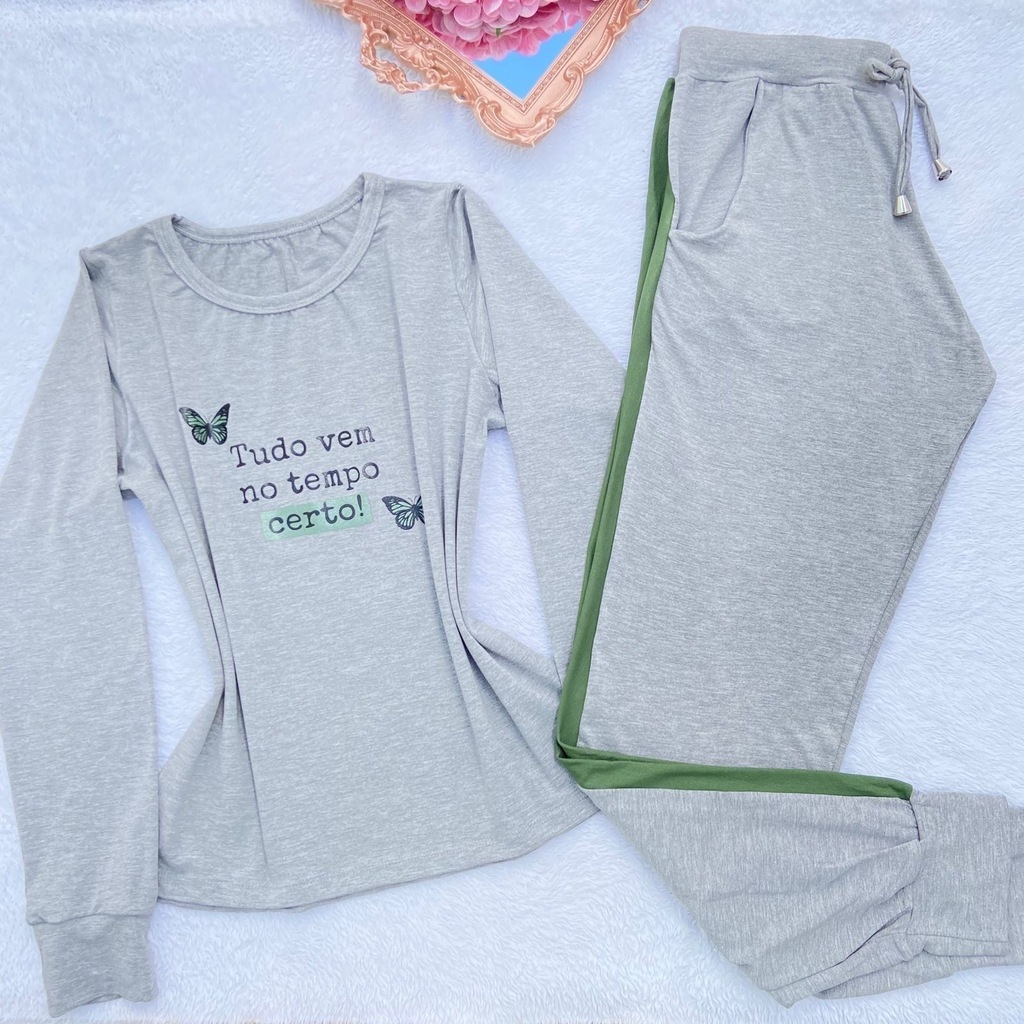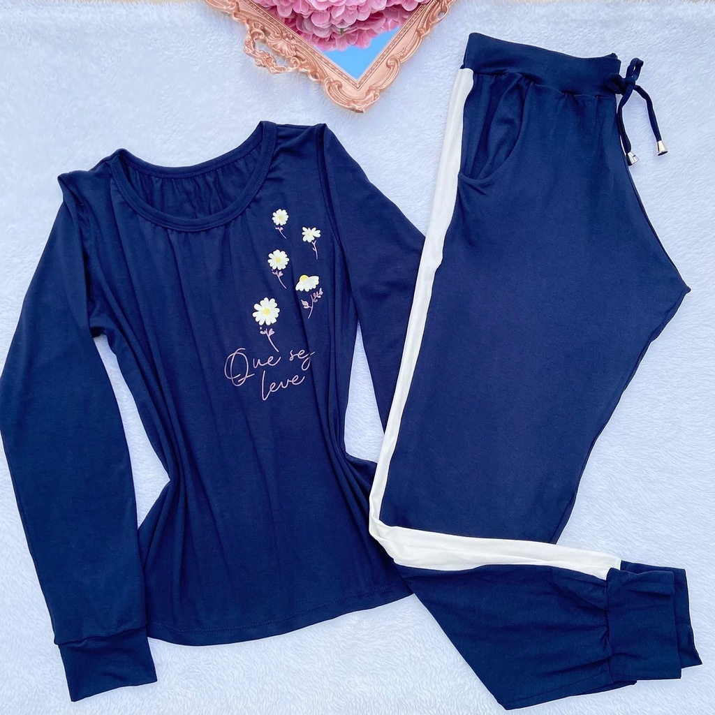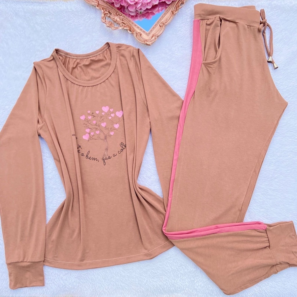 Descubra o Pijama Longo, confeccionado com a sofisticação do tecido viscolycra, que proporciona conforto e toque macio. A camiseta de manga longa traz punhos delicados e gola redonda com detalhes em viés, enquanto a calça reta acompanha punhos e cós com elástico embutido para ajuste perfeito. O fitilho para amarração e bolso funcional completam esta peça elegante, ideal para momentos de descanso com estilo e requinte.